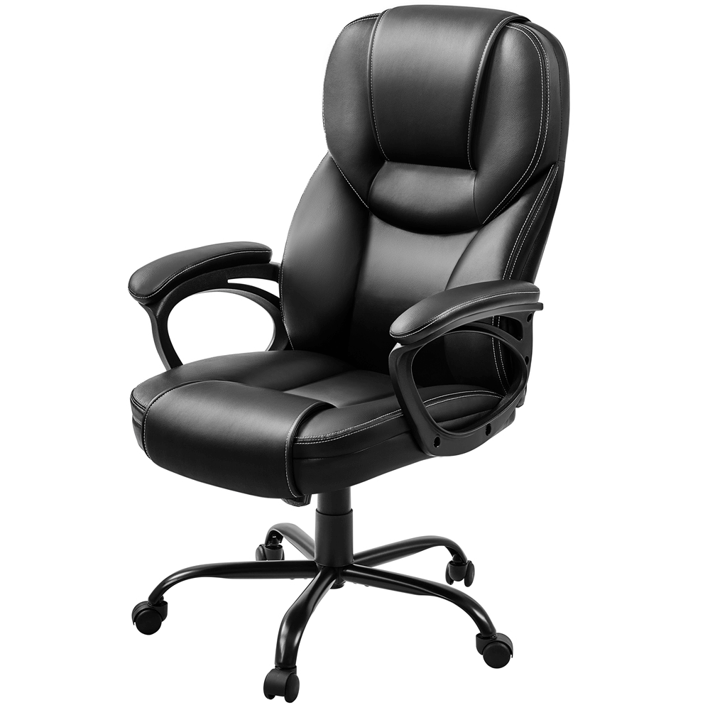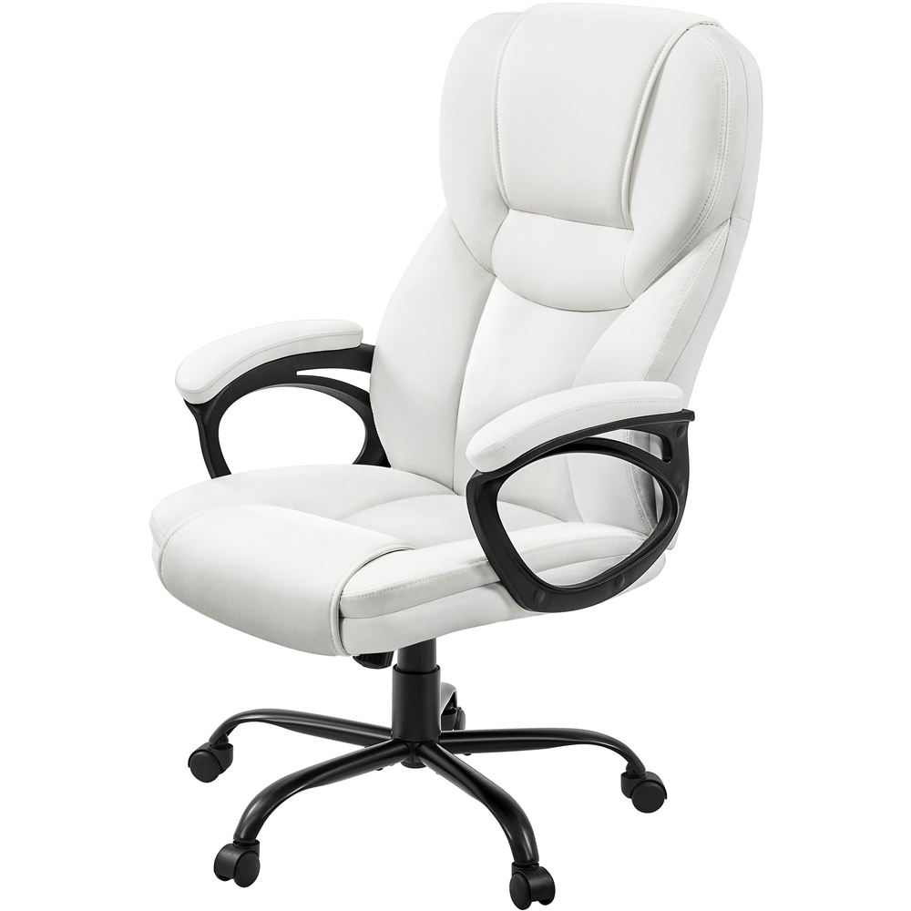 This swivel desk chair features smooth faux leather upholstery, a metallic star base, segmented padded design for a luxurious and sophisticated look. The spacious foam-padded seat and high, curved back offer optimal body support and relieve muscle tension from long hours of sitting. Ideal for study rooms, offices, home offices, reception areas, and libraries.